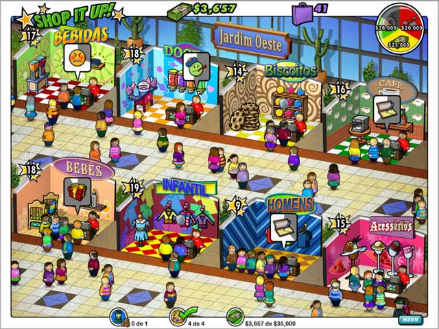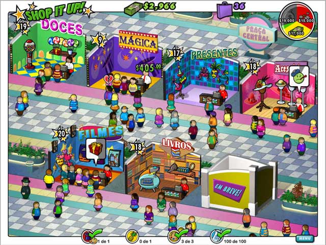 Prepare-se para a inauguração do novo shopping, os clientes já estão chegando, mas nem todas as lojas estão prontas! Use suas habilidades de decoração e abra novas lojas! Aumente seu estoque para satisfazer sua clientela e melhorar seus lucros. Contrate mais funcionários eficientes em Shop it Up! Diversão garantida neste jogo de gerenciamento de tempo!
